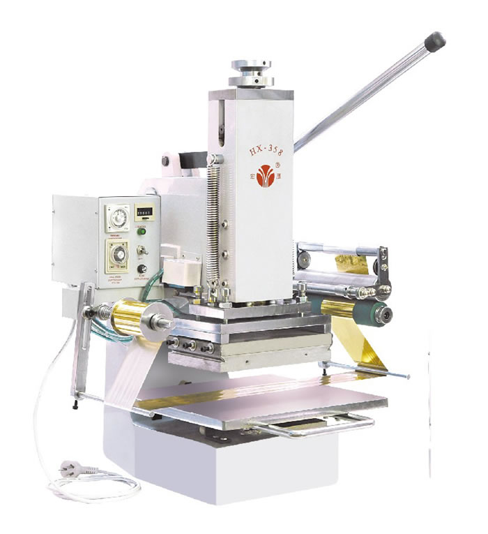 The machine is applicable in a large scope.Ir can thermorprint patterns, figures.characters and combined trademarks on paper, leather, Plastic rubber ,PVC soft rubber, woodenware, articles made of bamboo, photo. Cloth materials and technological decorations. It can impress and thermoprint concave patterns without stamping paper with high temperature in strong pressure and thick electroplate (for example:MG plate). It is a must tool in the industries like printing, packaging ,decorating and shoes leather.